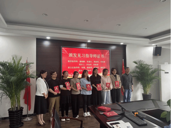 然后,见习队长麻雨萌同学向南浦实验中学锦绣校区为我们专业提供见习机会表示最诚挚的感谢:感谢学校提供如此好的平台和契机,同时也感谢欧校长百忙中抽空为我们见习生致辞。鉴于教育见习的重要意义,作为同学代表,麻雨萌向同学提出几点要求:严格遵守见习学校的规章制度与作息时间,不迟到、早退或缺旷;服从见习领导小组的统一安排,尊重见习学校的师生;认真做好英语教学的听课工作,刻苦钻研教材,认真做好听课记录;虚心向老师学习,深入了解班级同学,协助老师进行班级管理。最后,童芳莉老师和见习队长麻雨萌为各位指导老师颁发了聘书。