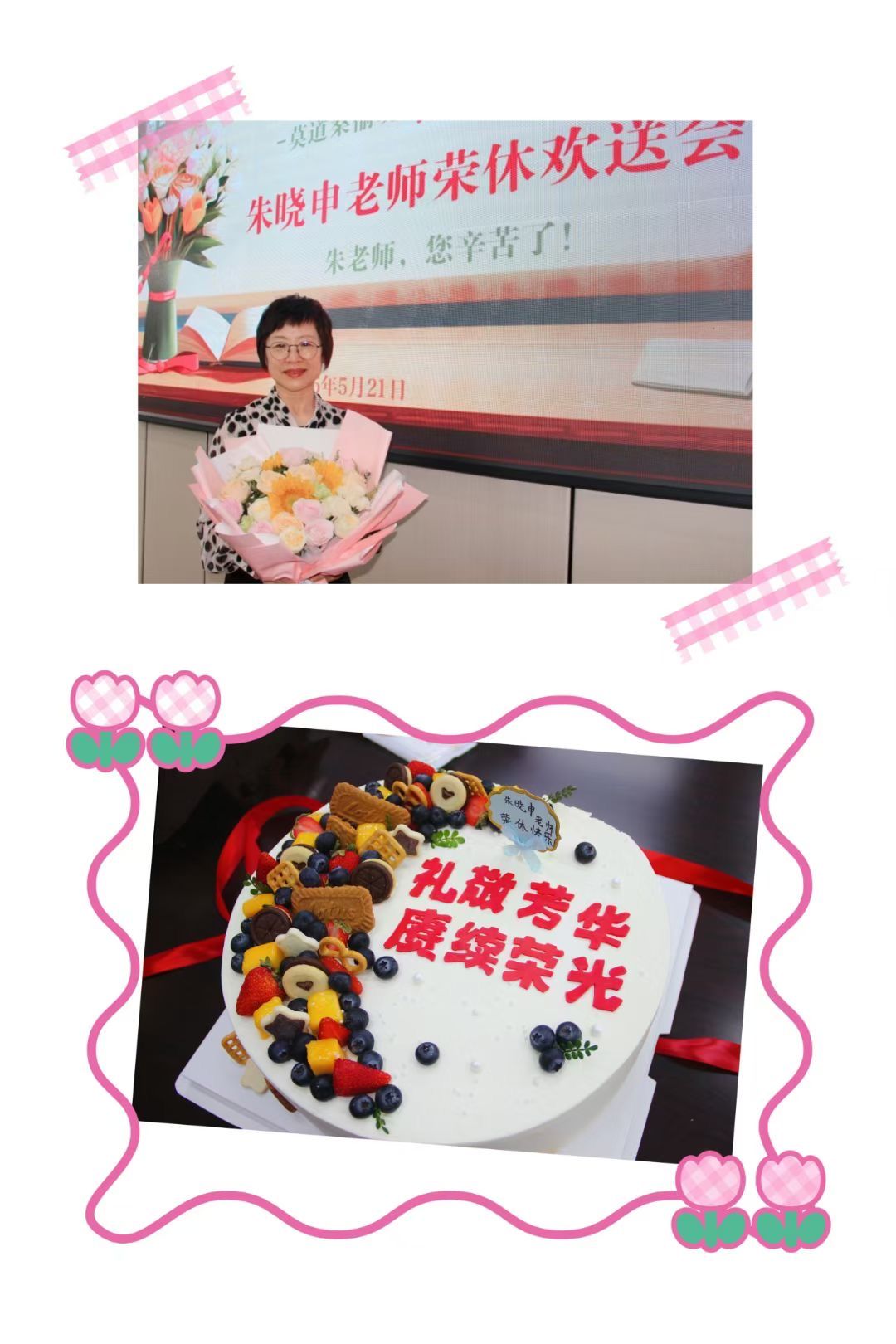 最后,杨书记用“四十年耕耘结硕果,四十年桃李满天下”再一次表达对晓申老师的尊敬和感谢,并祝福亲爱的晓申老师荣休快乐、岁月安暖!夕阳无限好,晚霞别样红!尽管有太多的不舍,却难以挽留离别的脚步。既然分别不可避免,那就把满怀的不舍托付给明朝相逢的喜悦。之后,老师们一起拍照留念,品尝蛋糕的甜蜜,欢送会在一片欢声笑语中结束。