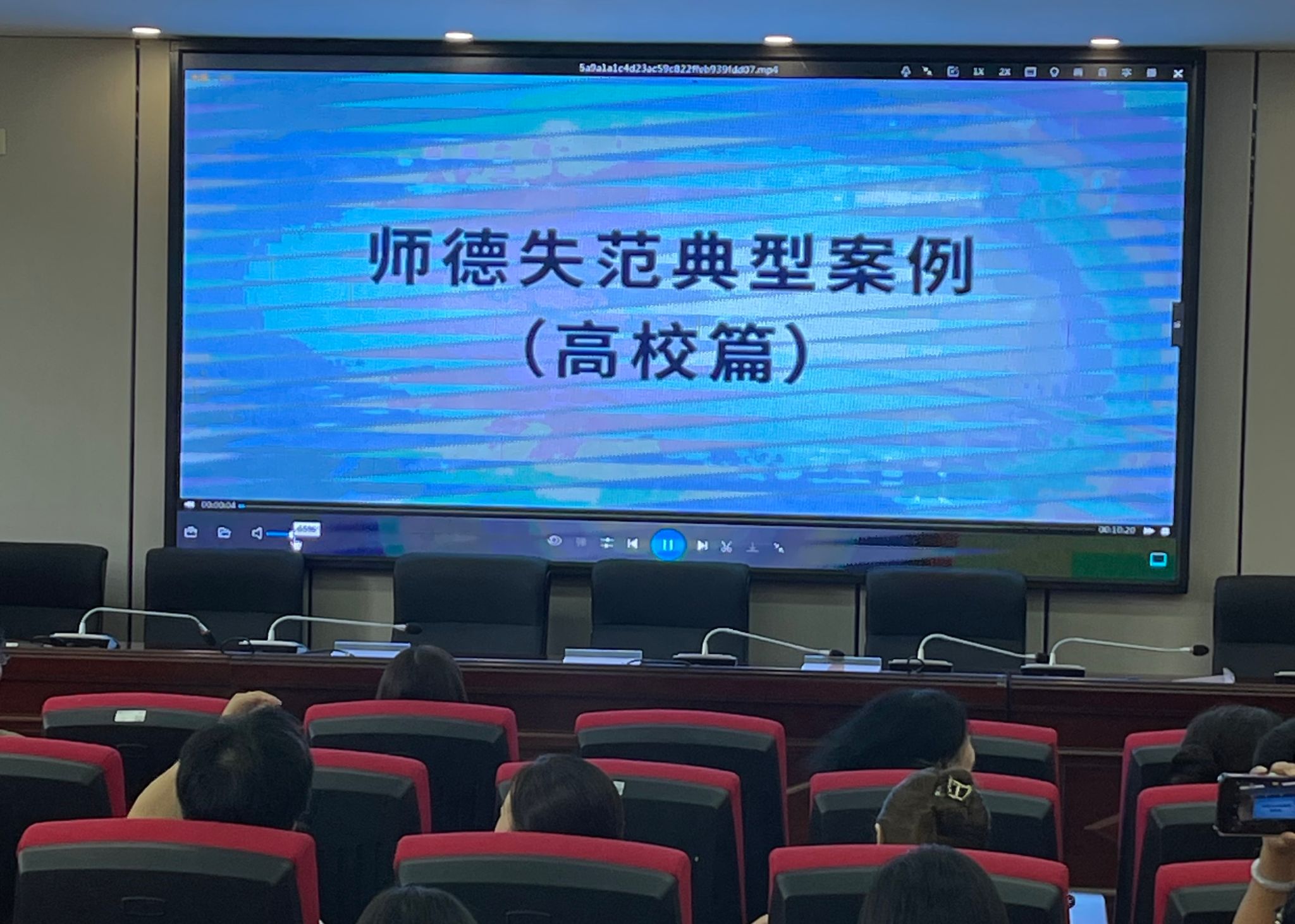 全体教职工在会上观看师德师风警示教育宣传片,该片围绕《新时代高校教师职业行为十项准则》,列举了九个师德师风反面典型案例,引导广大教师要引以为戒,牢固树立底线意识,学院将持续深化师德师风建设,为培养德才兼备的高素质专业人才提供坚实保障。