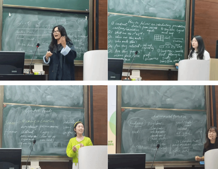 丁老师特别强调了“主动学习”(active learning)的重要性。她认为,新时代课堂应通过问题导向、任务驱动与情境探索,让学生在“学中做、做中学”中主动建构知识。 她以示范课为例指出,语音教学可通过自主归纳与同伴互评培养语言意识;语法与词汇教学以开放任务激发探究欲;语篇与写作教学则倡导“先思考后表达”,实现语言运用与思维发展的统一。
