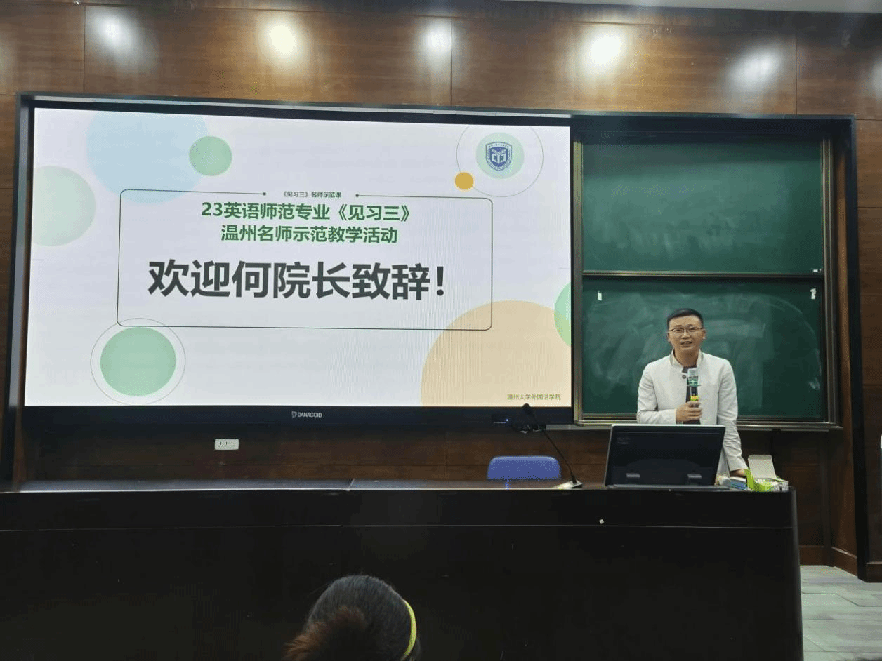 活动启幕之际,外国语学院何永成副院长代表学院发表了热情洋溢的致辞,对温州中学英语教研团队的盛情接待与周密安排表达了诚挚的感谢。他强调,此次“走进名校”活动是学院深化校际合作、强化师范生教育实践的关键举措,对于提升师范生的课堂教学技艺与教育研究能力具有深远意义。他勉励同学们以此次活动为契机,深入课堂、贴近学生、走向教育前沿,在实践中锤炼师德师能,在反思中升华教学智慧。