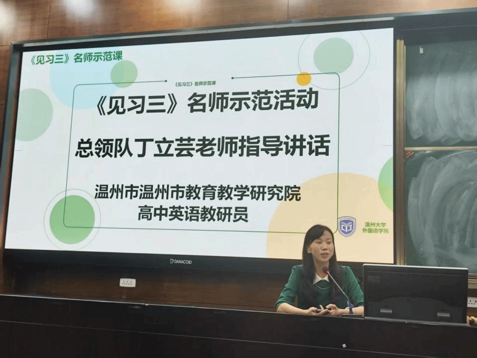 温州市高中英语教研员丁立芸老师领衔的温州中学英语教研团队,以“高中教学示范课”为主题,为同学们呈现了八节风格迥异、精彩纷呈的英语教学示范课。 在课堂观摩环节,温州中学八位一线教师依次展示了语音、语法、词汇、语篇、听力、口语、阅读、写作等八大课型的示范教学。