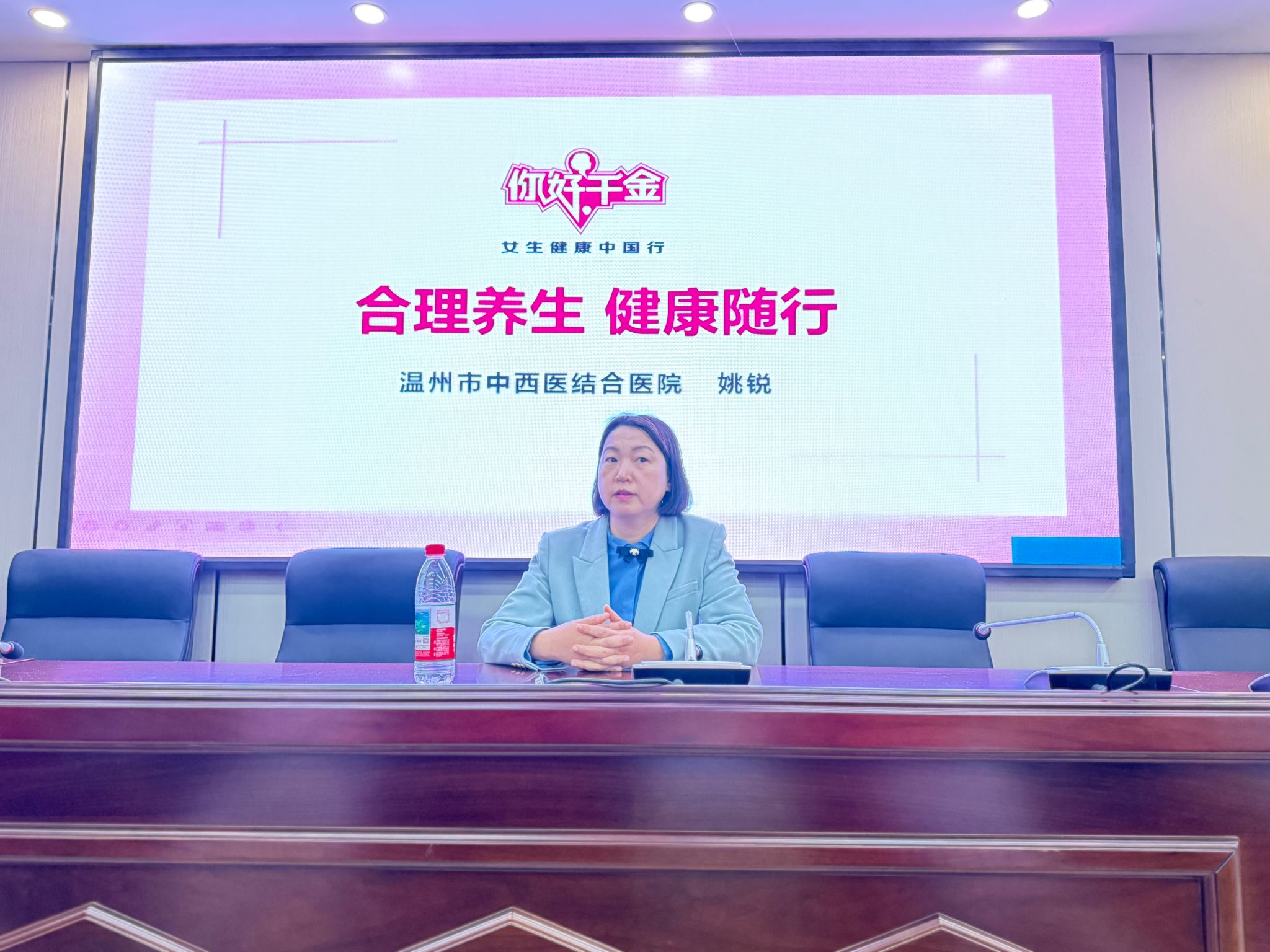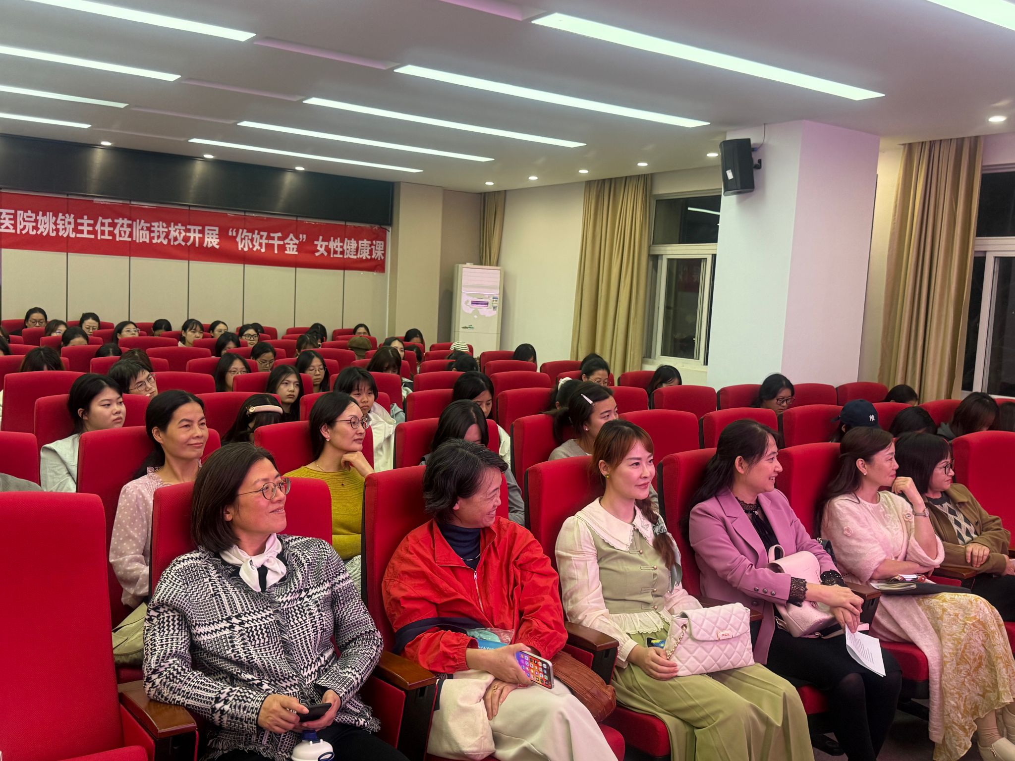 为引导女性积极关注自身健康,切实提高自我保护意识和疾病防治能力,普及科学实用的女性健康知识,2025年10月29日,在温州大学北校区外语楼214报告厅成功举办女大学生“木兰课堂”(第47讲)专题讲座。本次讲座由温州大学妇联主办,外国语学院妇联、商学院妇联、人文学院妇联及音乐学院妇联共同承办,联合中国妇女杂志共同开展的“你好千金-女生健康中国行”公益讲座。温州市中西医结合医院姚锐主任医生担任本次活动的主讲嘉宾。株洲千金药业股份有限公司浙江销区(温州地区)经理李赛,外国语学院党委书记杨丽君,妇联主席童芳莉,副主席周亚娟,英文系副主任薛丽芳,以及来自商学院、人文学院、音乐学院、化材学院、建工学院等近90名女教工及女大学生参加本次活动。