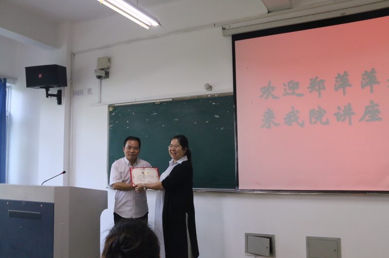 讲座开始,李院长隆重介绍了郑萍萍老师,为其颁发了聘书并合影。随后即将参加浙江省师范技能大赛的陈桐彤,翁一格,杨春意三位学姐分别选择初中英语教材上的不同模块为大家展示了15分钟的小课堂。郑老师就三位学姐的讲课做出了细致的点评,并基于学姐们讲课中的一些问题,引出了讲座的主题。郑老师突出强调了文本解读的重要性,要基于文本解读进行梯级问题设计。接着,郑老师采用课例剖析的方法,选择三位学姐的课程材料,针对教学内容、教学对象、教学重难点、教学目标、设计思路和教学过程扥方面进行了具体的阐释。随后老师还给大家展示了自己上课用到的PPT以及设计思路。