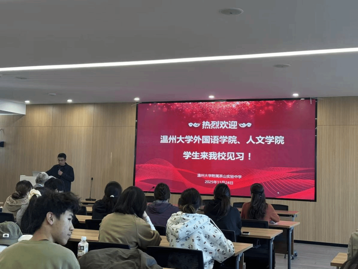 2025年11月24日上午,阳光正好,温州大学24级英语(师范)1班的同学们满怀期待与热忱,踏入了温州大学附属茶山实验中学的大门,开启了为期两周意义非凡的教育见习之旅。此次见习,是同学们走出大学课堂、走进真实校园的关键一步,旨在让他们近距离感受基础教育教学的真实场景,将所学的英语学科教育理论与实际教学紧密结合,为未来的教育实习乃至职业发展筑牢坚实根基。