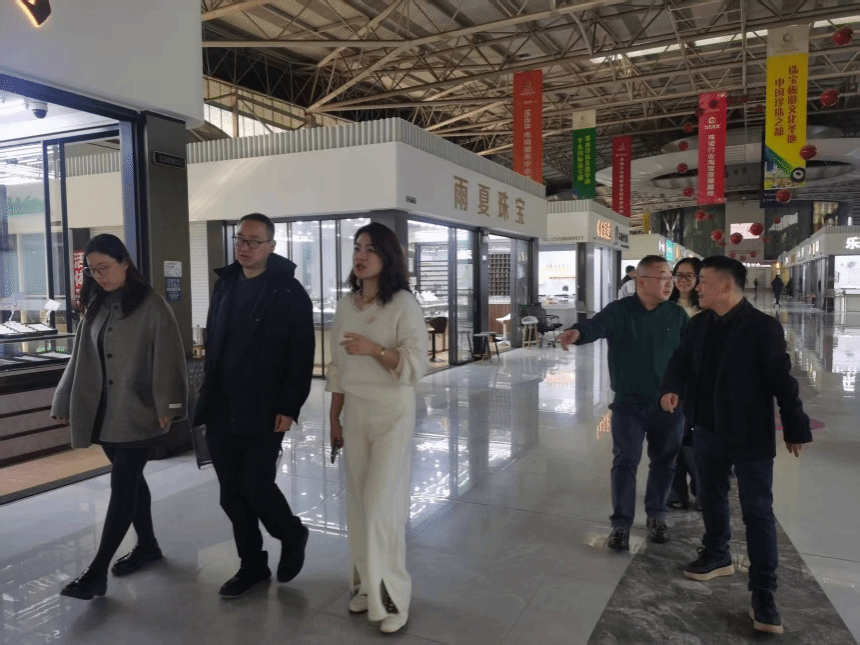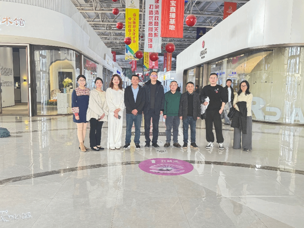 在诸暨市山下湖镇,调研组拜访了镇党委书记郭南与副镇长陈博文,并实地考察了华东国际珠宝城。双方就如何利用翻译与跨文化传播优势,讲好中国珍珠故事,探讨了“珍珠文化+跨境电商”的融合发展路径。王红玫主任结合自身深厚的中西方文化研究背景,对提升产品文化附加值提出了独到见解。