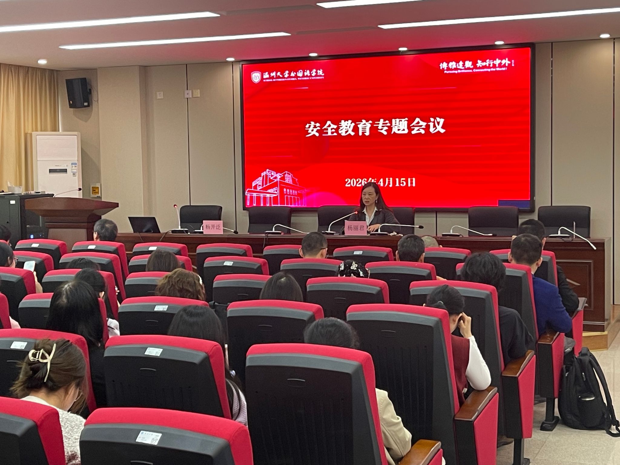 结合全民国家安全教育日,杨丽君书记主持开展安全教育专题学习,围绕政治安全、消防安全、交通安全、网络安全等重点领域作出部署,要求牢固树立 “两个维护”、坚定“四个自信”,密切关注师生动态,严守保密纪律,提高安全防范意识。她强调,安全无小事,全体教职工要进一步强化安全责任意识,严格落实各项安全工作要求,筑牢校园安全坚固防线。