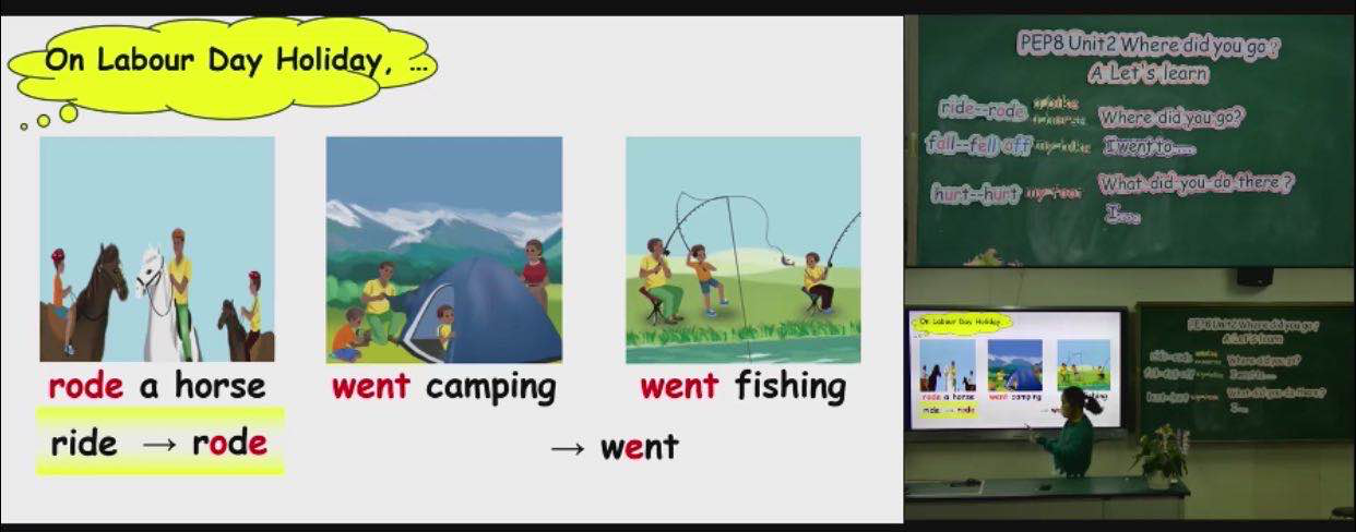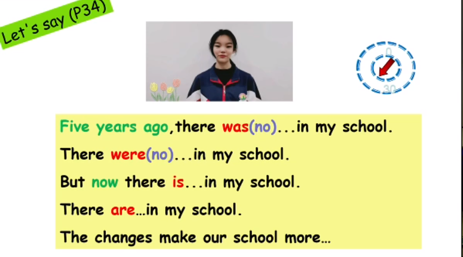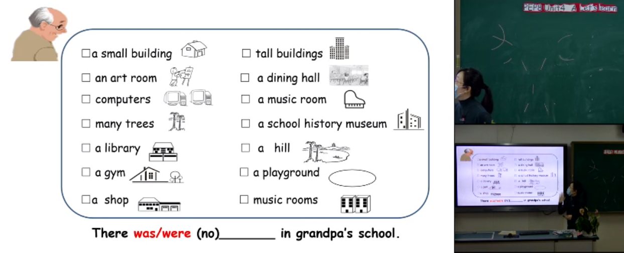 接下来是来自王成芳老师pep8 Unit4 A Let’s learn. 在上课开始就用了一个视频来引入今天的话题,50年的校园变化。通过一张表格让学生来判断哪些是不符合50年前校园配置的,生动又有趣,同时也顺便提到了ago的用法,接下来就开始讲课文了,先通过播放音频让学生有一个大概的了解,再提出相应的问题进行讲解,使学生能更好的理解课文。最后还插入了学生介绍自己学校的视频,鼓励学生们模仿并大声说出来,课堂小结简明扼要。