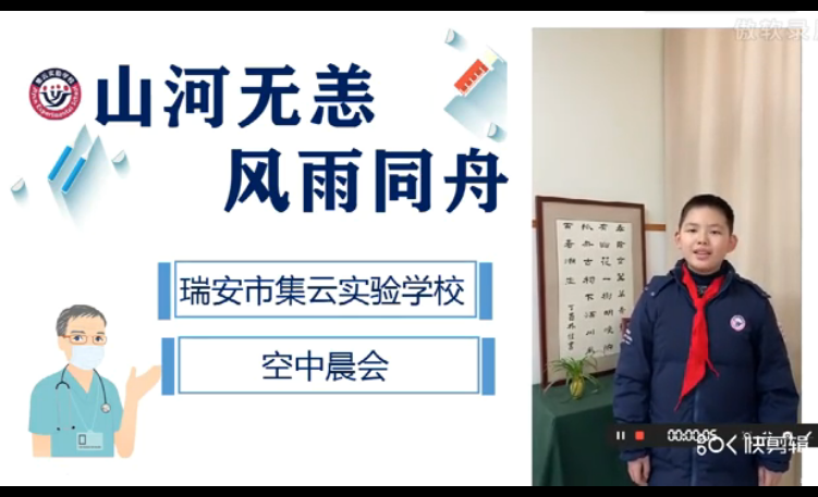 2020年6月3日,温州大学英语师范专业的同学,在线观看了集云实验学校的空中晨会。晨会在国歌的旋律中拉开了序幕。此次晨会以“山河无恙,风雨同舟”为主题,围绕此次在武汉突然爆发的新型冠状病毒,报道了中国在疫情爆发期间与病毒抗战的过程,展现中国面对病毒时的临危不乱和团结一心战胜病毒的伟大事业。同时也报道了面对病毒,国外形势的严峻和某些国家对此次病毒事件的推卸和对中国的职责,与中国的作为形成强烈的对比。在最后,小朋友们还展示了返校以后,该如何做好自我防护。