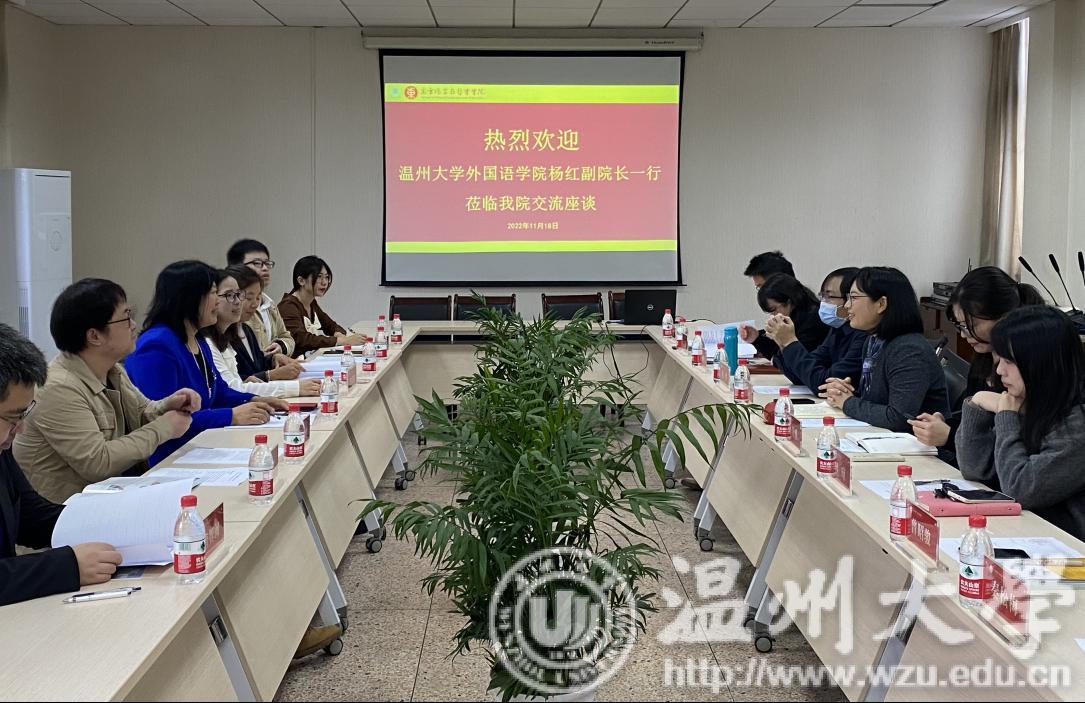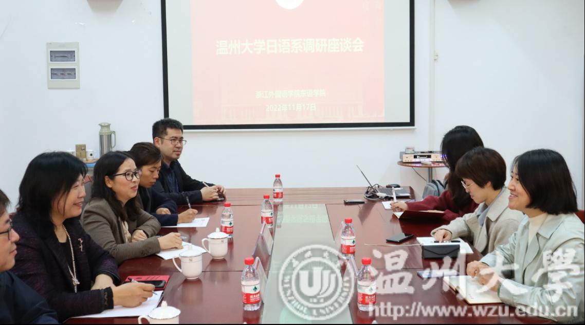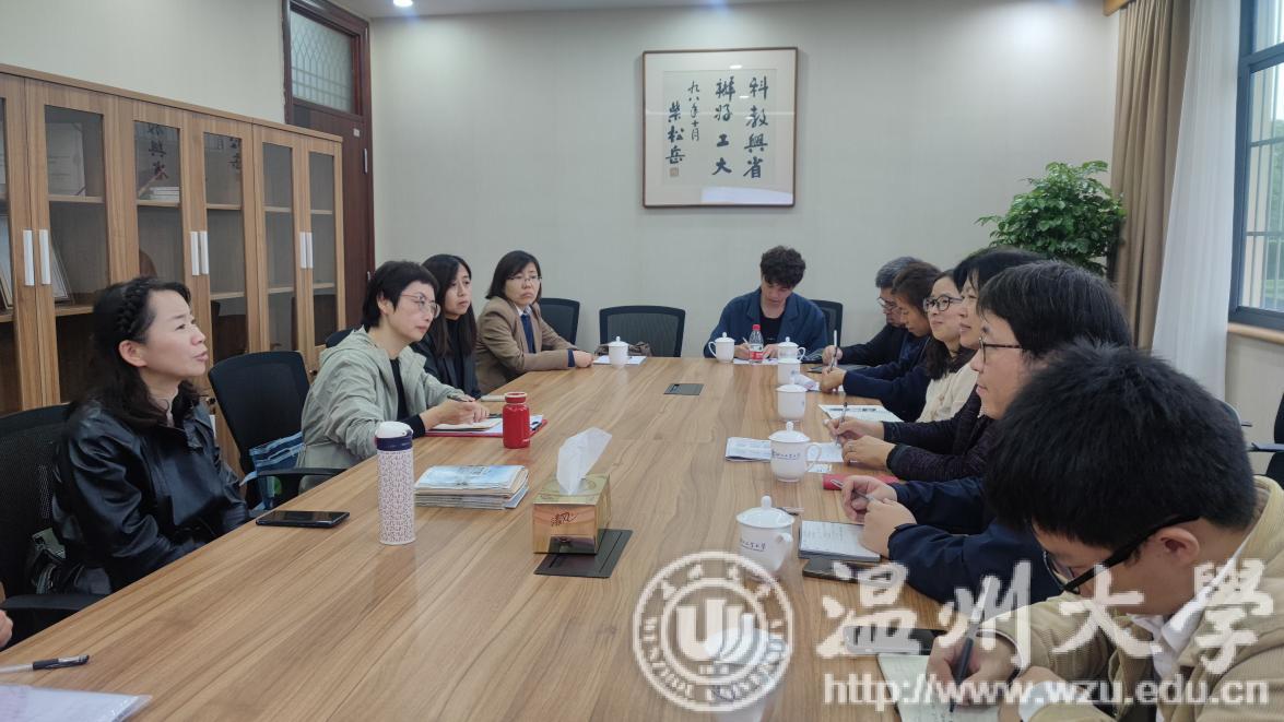 17日下午,温州大学日语系一行来到浙江工业大学外国语学院进行访问。浙江工业大学外国语学院副院长张艺宁与日语系教师对温州大学日语系的到来表示欢迎。