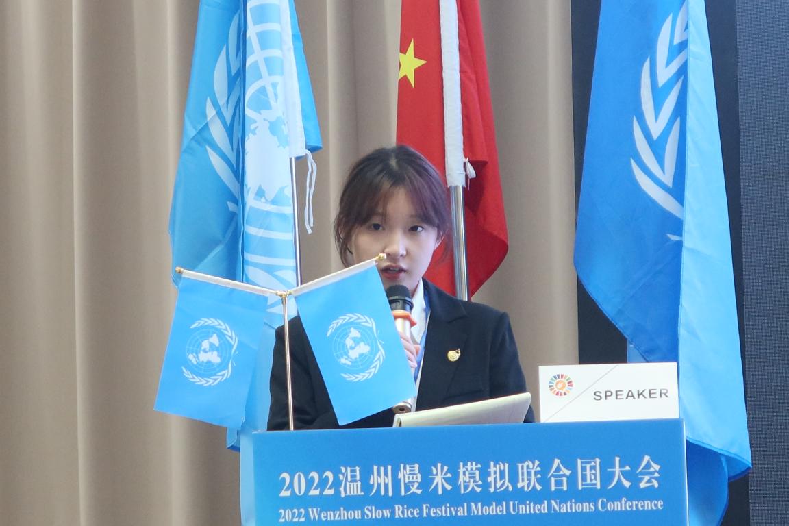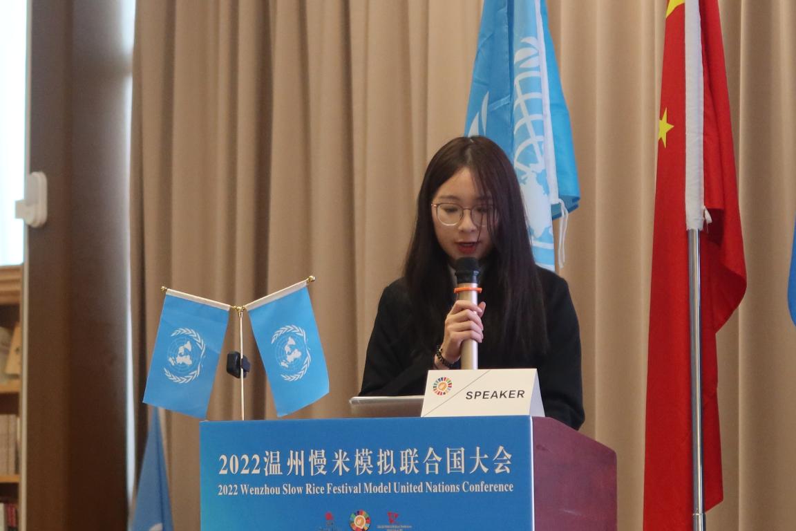 11月26日,世界青年科学家学术中心,以 “推动粮食体系转型 应对全球粮食安全挑战” 为主题的慢米节模拟联合国校际联赛圆满举行。此次模拟联合国活动安排在七都慢米节期间举行,翻译专业的丁梦欣、孙歆琰作为温州大学代表受邀参加了本届英语组慢米模拟联合国大会。
