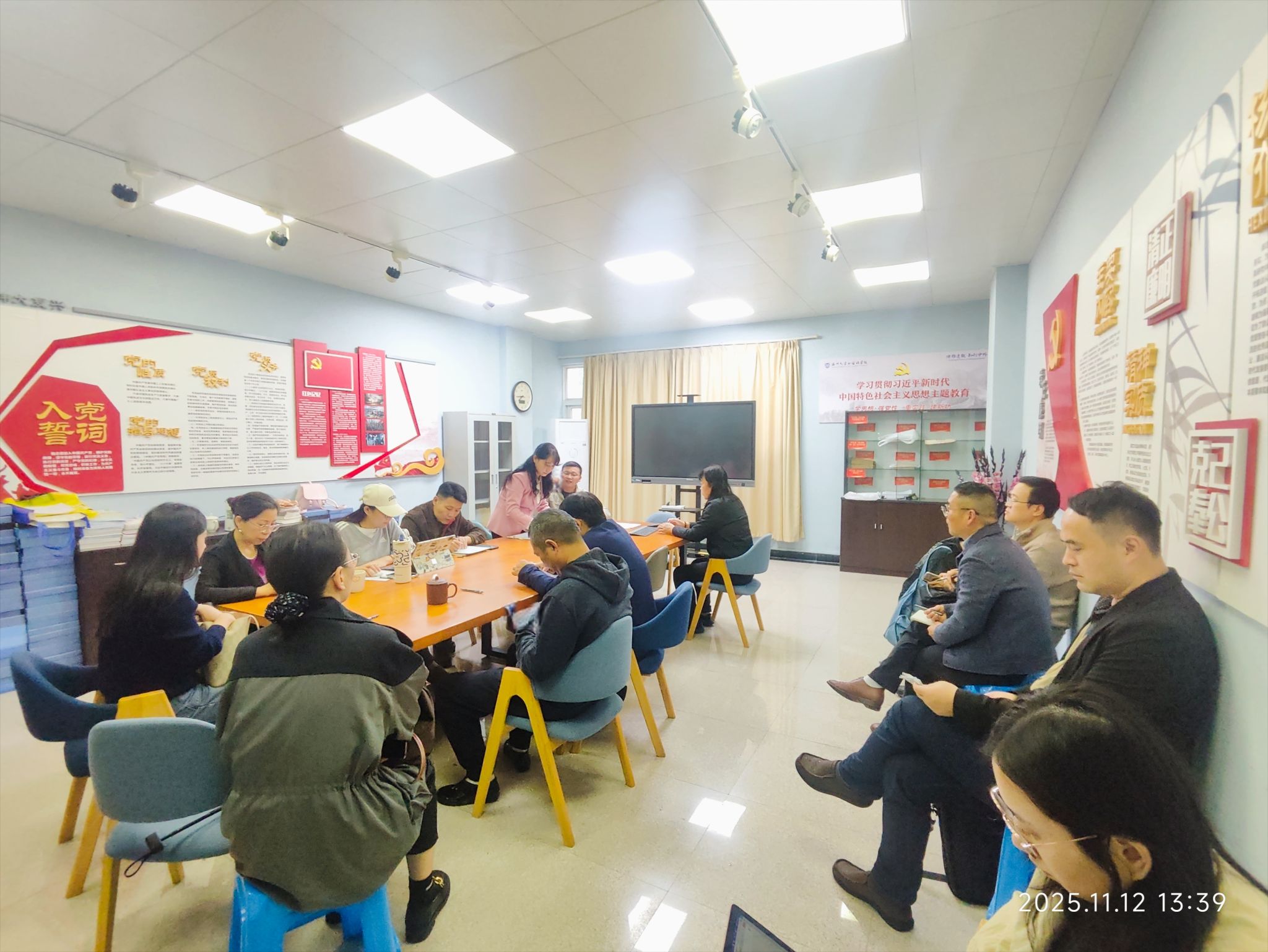 为进一步贯彻落实党的二十届四中全会精神,加强省级样板支部建设,筑牢思想根基,明确发展方向,2025年11月12日下午,外国语学院教工第一党支部在外语楼221党员之家召开政治理论学习会议。支部全体党员参加会议,会议由支部书记何永成主持。