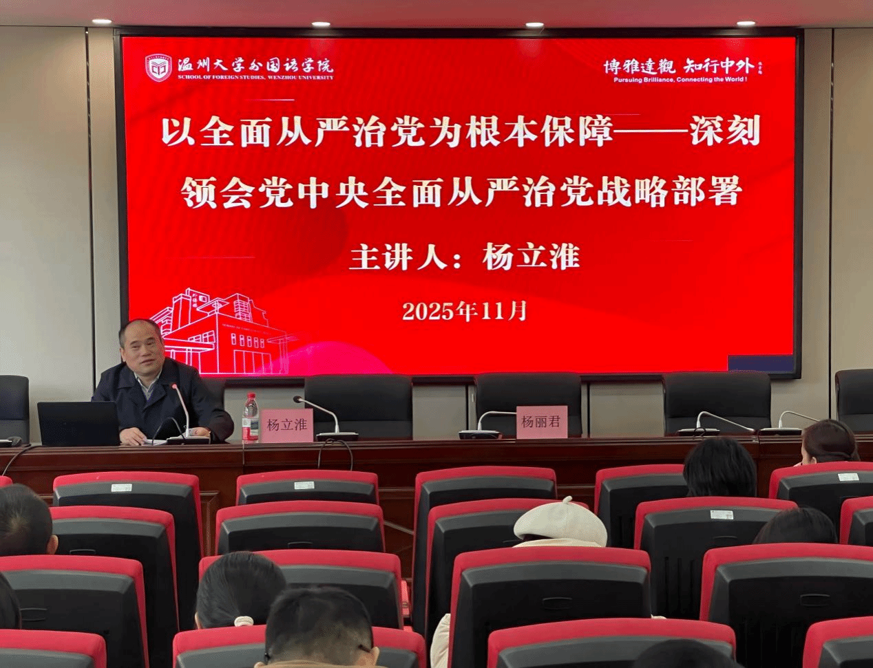 11月19日下午,学院党委组织师生党员在学院214报告厅举办理论学习会,学校学习贯彻党的二十届四中全会精神宣讲团成员、马克思主义学院党委书记杨立淮老师为师生作《以全面从严治党为根本保障—深刻领会党中央全面从严治党战略部署》专题辅导报告。报告紧紧围绕党的二十届四中全会精神和《中共中央关于制定国民经济和社会发展第十五个五年规划的建议》,从持之以恒推进全面从严治党,学习领会《建议》的战略部署,以党的自我革命引领伟大社会革命,保持战略定力、推进全面从严治党,在修身正己中完善自己等五个方面,对全会精神作了深入透彻的宣讲解读。