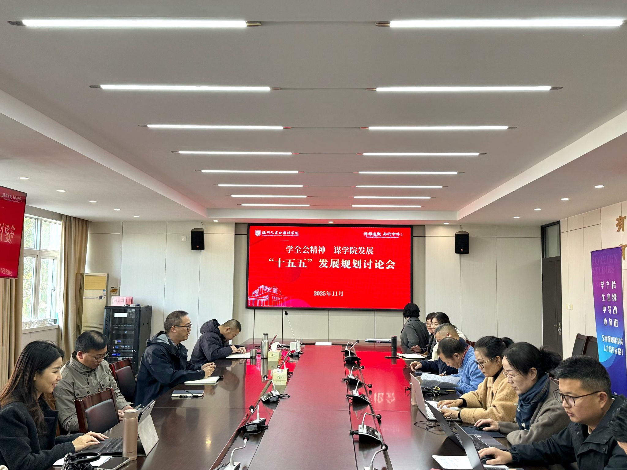 11 月 20 日下午,外国语学院于外语楼 212 会议室召开 “十五五”发展规划讨论会。为精准对接学校“高水平大学建设与‘十五五’发展规划编制”十大核心议题,学院班子成员、各系部(科室)负责人及骨干教师、教授代表齐聚一堂,立足外语学科发展规律与国家战略需求,紧扣高质量发展主线,围绕未来五年学科升级、专业提质、人才培养、服务地方、国际合作等方面工作展开深度研讨、畅所欲言,凝聚发展共识。会议站位全局、聚焦关键,通过集思广益进一步明晰了学院 “十五五” 期间的发展方向与核心任务,为学院规划编制提供了坚实的思想基础与实践支撑,更凝聚起全院上下共谋高质量发展的强大合力。