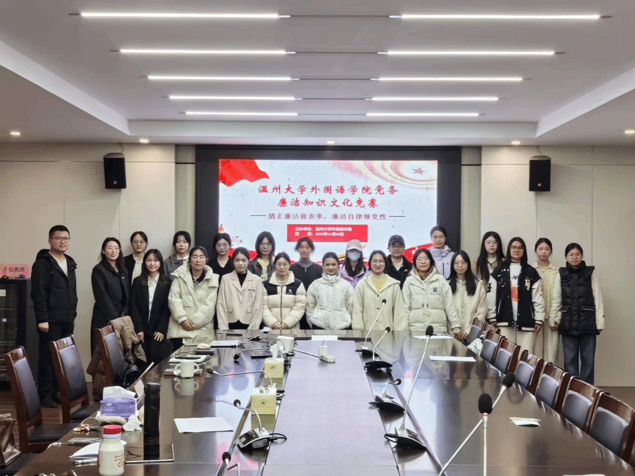 1月26日下午,外国语学院在212会议室成功举办“清正廉洁做表率,廉洁自律锤党性”党务廉洁文化知识竞赛。学院师生代表齐聚一堂,以知识竞答为载体,紧扣廉洁法规、党建理论、教风学风等核心内容,通过以赛促学、以学促廉的方式,在答题比拼中深化对廉洁内涵的理解,在互动交流中凝聚崇廉尚洁的共识,推动廉洁文化知识入脑入心。此次活动不仅丰富了学院廉洁教育形式,更将廉洁理念融入育人全过程,为培养德才兼备的高素质外语人才注入强劲“廉动力”。
