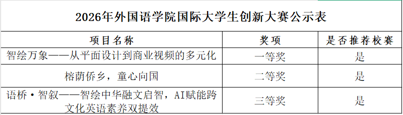根据《温州大学推进“互联网+”大学生创新创业大赛工作实施办法》等文件精神,外国语学院坚持公平、公正、公开原则,组织互联网+院级评比,经学生团队申请,学院学工办资格审查,学生现场展示,评委审定,院赛结果公示如下: